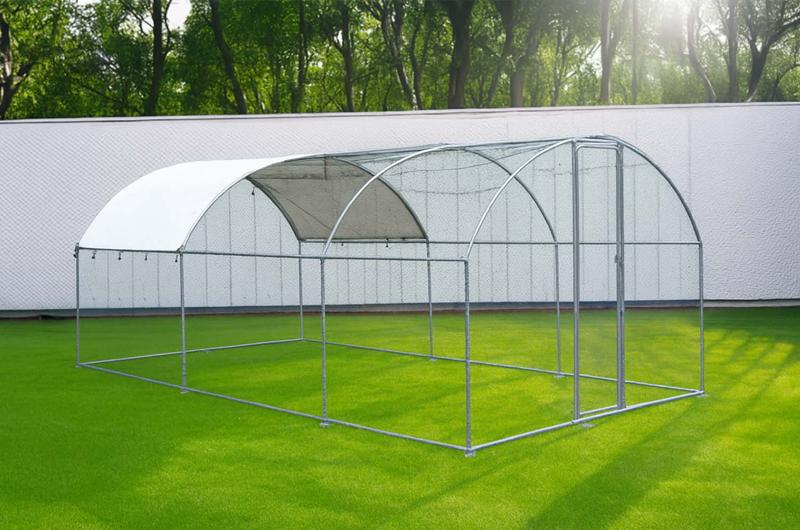 This spacious walk-in pen is perfect for safely housing chickens, rabbits, or other small animals outdoors. Made from galvanised steel tubing for durability and rust resistance, it features 1.5m-high walls for easy access during cleaning and care. The enclosure is covered with strong 25x25mm PVC-coated hexagonal wire mesh (1.1mm thick) to help protect your animals from predators while keeping them secure. It also comes with a 3m x 2m UV-stabilised polyester roof cover to provide essential shade in hot weather.