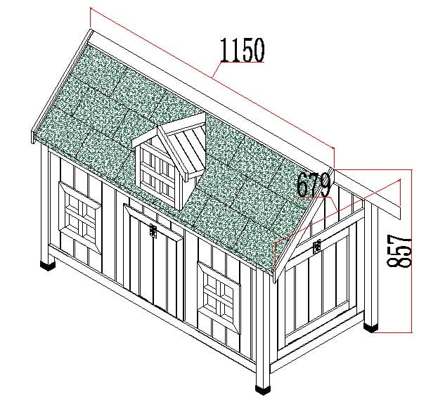 - Dims incl nest box and roof overhangs approx: (115cm x 68cm x 86cm)