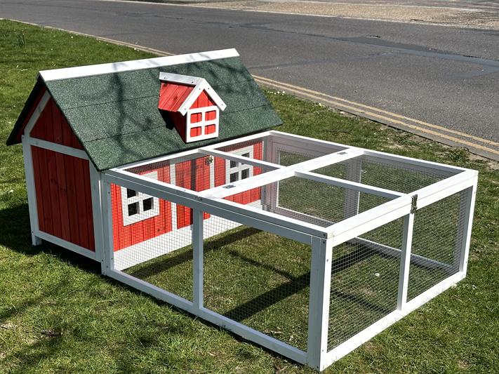 This super wooden chicken house will look fantastic in any back garden and is built to last. The Farm House Red Chicken Coop comes flat packed ready for straight forward easy home assembly.